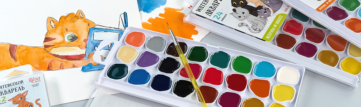 З акварельними фарбами ROSA Kids дитині легко вивчати кольори спектру та досліджувати процес змішування фарб.