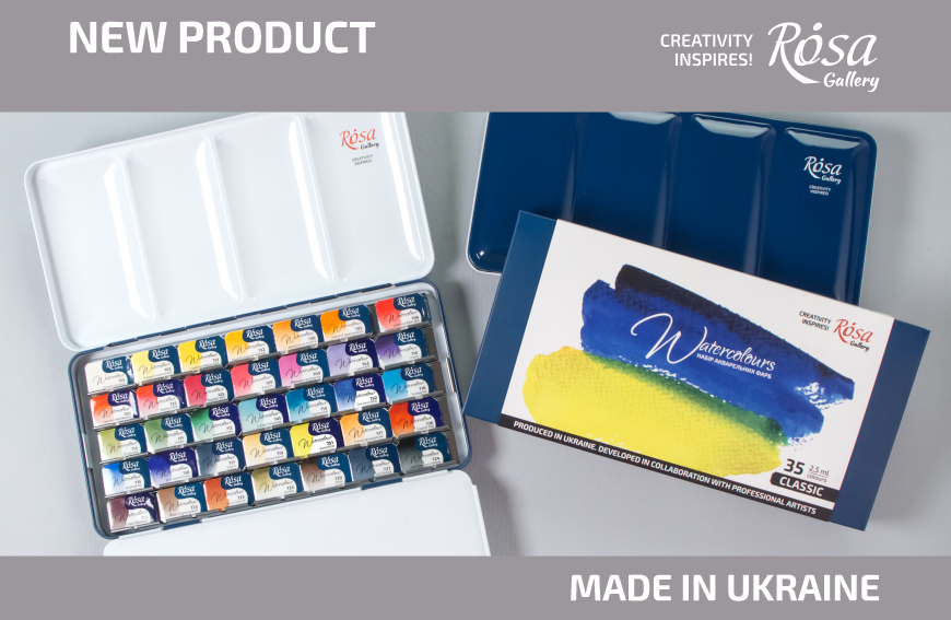 Новий набір акварельних фарб КЛАСИКА сформований з традиційної палітри акварелі на базі знаного набору на 28 фарб та доповнений новими популярними кольорами (Ауреолін, Білила титанові, Капут-мортуум, Кобальт бірюзовий, Лавандова, Маджента рожева, Церулеум).