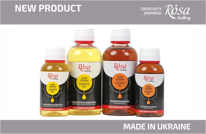 Нові продукти від ROSA Gallery – полімеризована лляна олія та відбілена рафінована лляна олія.