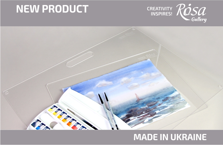 Планшети ROSA Gallery виготовлені з акрилу – гладкого, вологостійкого матеріалу, в пори якого не набивається фарба і вода. За рахунок своїх властивостей, планшет не розбухає при контакті з водою та зберігає форму навіть при тривалому використанні, з нього легко зняти скотч, що кріпив роботу та змити залишки фарби.