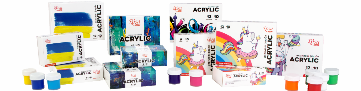 Відкрий для себе нове хобі – поринь у світ творчості та кольору. З наборами акрилових фарб від ROSA STARТ – творчість доступна кожному!