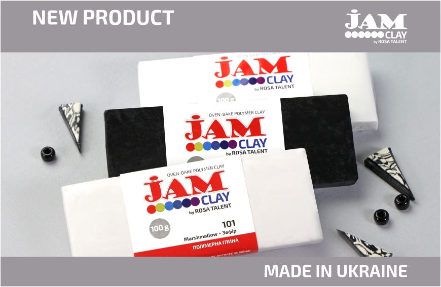 Відтепер основні кольори полімерної глини JAM CLAY by ROSA Talent – чорний та білий доступні у великому об’ємі – 100г. Таке фасування зручне для професійних майстрів, які використовують значну кількість матеріалу, роблять багато виробів та для новачків, які створюють вироби великого розміру.