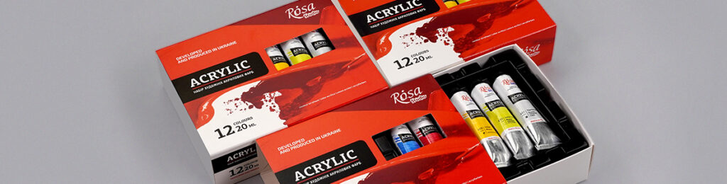 Відтепер набір акрилових фарб ROSA Studio у тубах на 12 кольорів по 20 мл буде доступний в оновленому пакуванні.