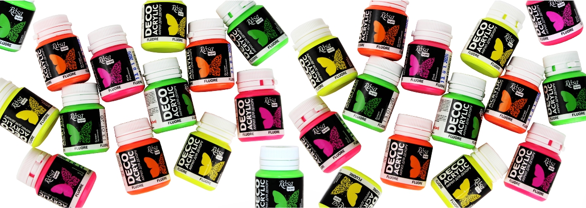 ROSA Talent Decorative Fluorescent Acrylics is easily and uniformly applied to any surface: ceramics, wood, paper, cardboard, primed canvas, metal, leather and is a trending material in the modern decorator’s arsenal.