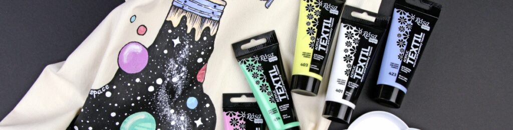 ROSA Talent water-based acrylic paints are ideal for painting on light and dark fabrics of various compositions, including leather and suede. They are elastic after drying and do not thicken the fabric excessively. Due to the high pigment content, the paints have saturated and bright colours that mix well with each other, forming new desired shades. Due to the uniform consistency of the paint, they spread evenly on the fabric and don’t bleed, so it’s convenient to paint with a stencil.