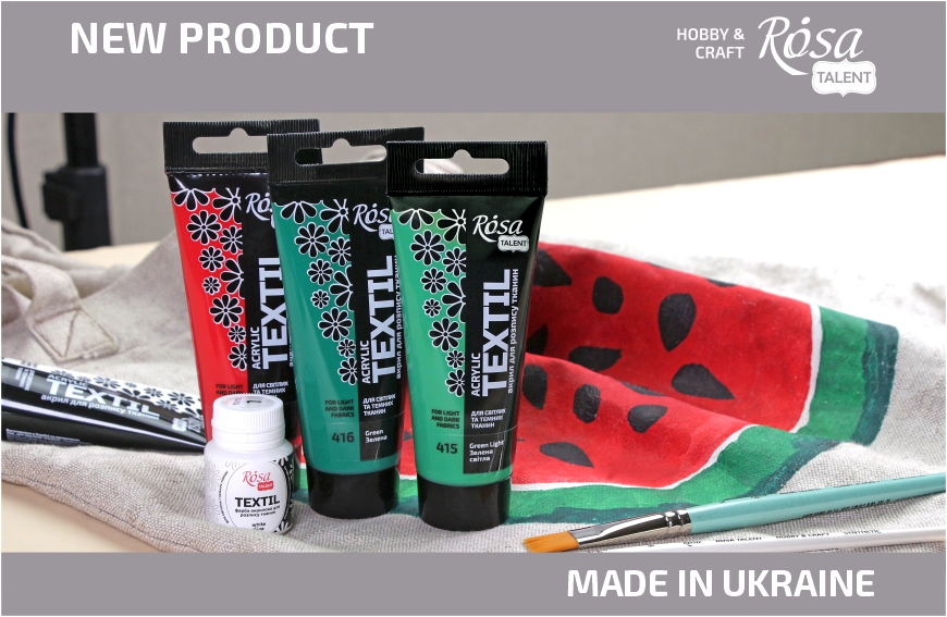 From now on, the entire palette of acrylic paints for fabric from ROSA Talent is in a convenient 60 ml plastic tube + 15 new shades that harmoniously complement the palette:
