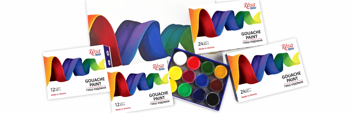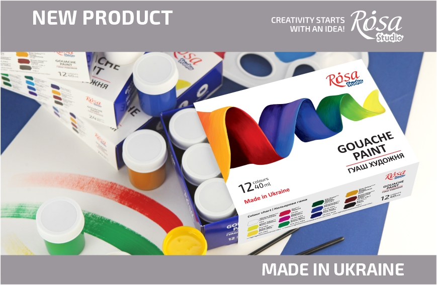 Important: from now on, sets of ROSA Studio gouache paint have a new type of a box with a case and even a new design, easy to open, less damaged during usage and storage.
