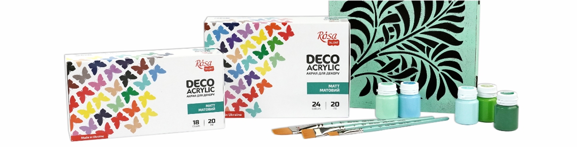 New extended sets of acrylic paint for decoration ROSA Talent are a real find for beginners, those who want to try their hand at the technique, but can’t decide on the colours, as well as for creative activity with children.