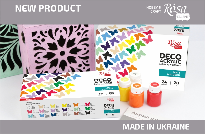 Great news for you! We have new sets of acrylic paint for decoration from ROSA Talent of 18 and 24 colours!
