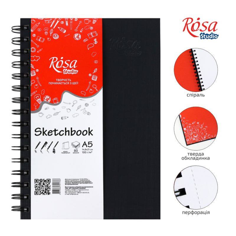 – ROSA Studio spiral-bound sketchbook is lightweight, compact and easy to use.