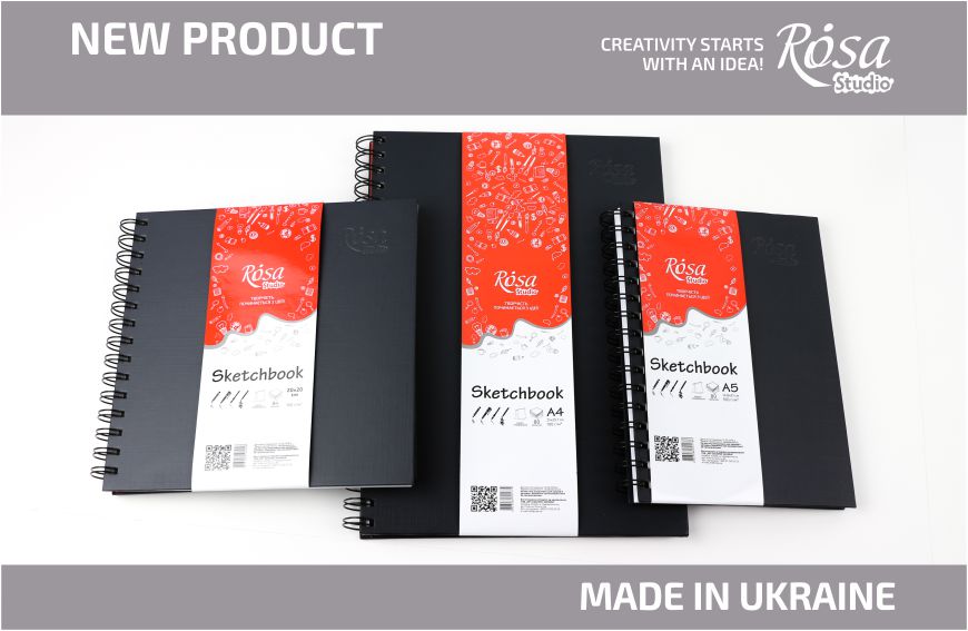 ROSA Studio presents new products: spiral-bound sketchbooks of different formats – A4, A5 and square 20 * 20cm.