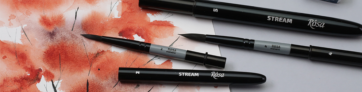 Watercolor brushes synthetics round ROSA STREAM 158 are universal brushes that perform accurate, detailed work, as well as fills and wide strokes in various watercolor techniques.