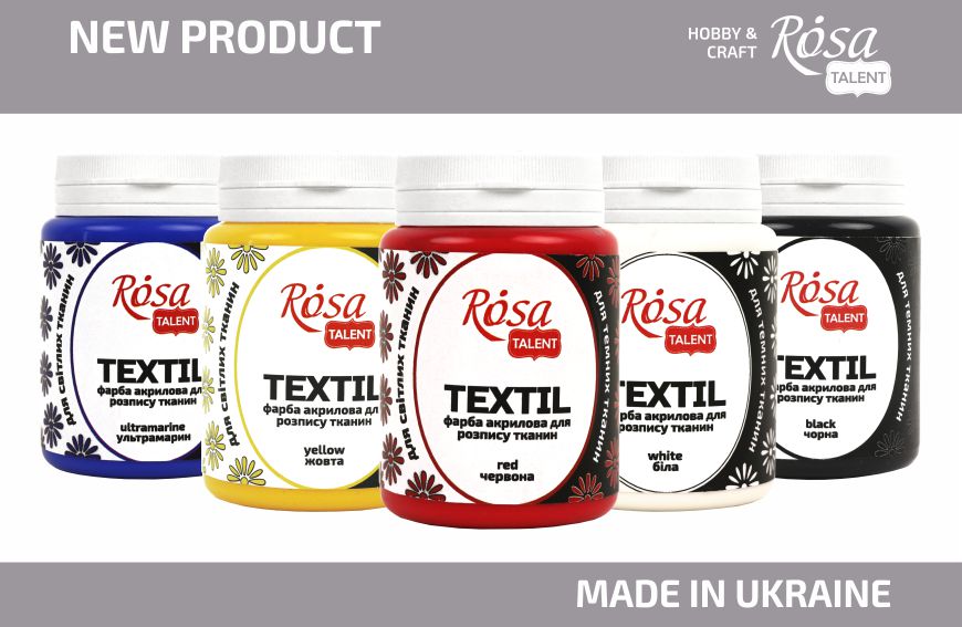 The most popular colours of ROSA Talent Acrylics for Fabric and Textile are now presented in a larger volume of 80 ml! This is very convenient for professional decorators who paint large items, work in studios, and it is also cost-efficient in comparison with buying a smaller volume of paint.