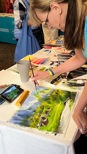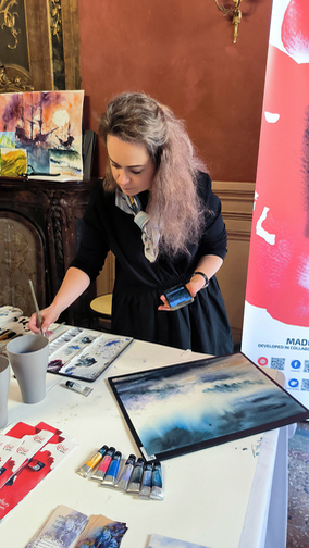 Except testing ROSA Gallery watercolours, the participants could enjoy demo painting from the leader of the Ukrainian group Victoria Grigorieva, the leader of the German group Carsten Wieland and the Dutch artist Yana Ivankova at the ROSA stand.