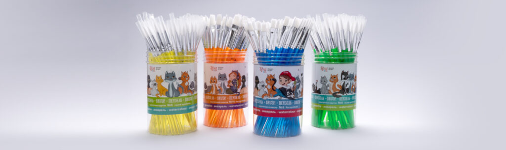 We have carefully selected the most popular types and sizes of brushes, which are frequently chosen for young artists. Our range includes packaging options suitable for kindergartens, art studios, and home creativity.