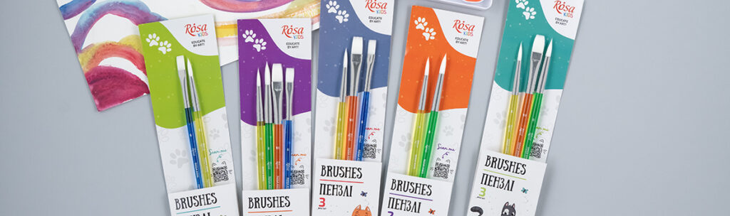 ROSA Kids Sets of Brushes come in a transparent silicone case, which is convenient for keeping them in good condition at home, in art folders, or in backpacks, ready to be used.