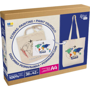 Sеt includes: • An ecobag with an applied outline of the picture • Acrylic paints for painting fabrics ROSA Talent • Artistic brush • Colour scheme • Transparent package