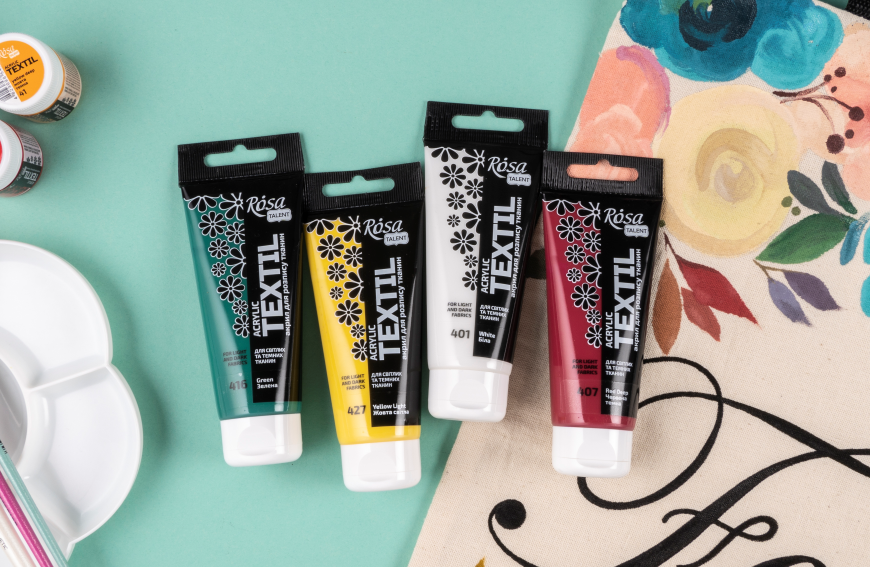 Acrylic paints for fabric art painting ROSA TALENT are high-pigment acrylic water-based paints for art painting of different light and dark fabrics, leather and suede. Paints’ colours are easily mixed with new tints arising. High-quality pigments provide bright and light-resistant colours. Due to their excellent covering power the paints can be used for art painting of both light and dark fabrics. The paints are perfect for art painting of elastic natural and synthetic fabrics. Unique recipes and creamy consistency enable the paints deeply penetrate the fabric fibers without overdensifying the fabric.