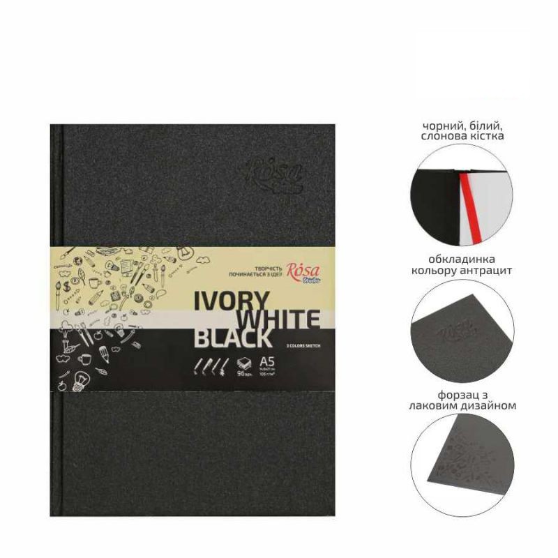 Sketchbook A5, ivory black and white paper, 80gsm, 96 sh.ROSA Studio
