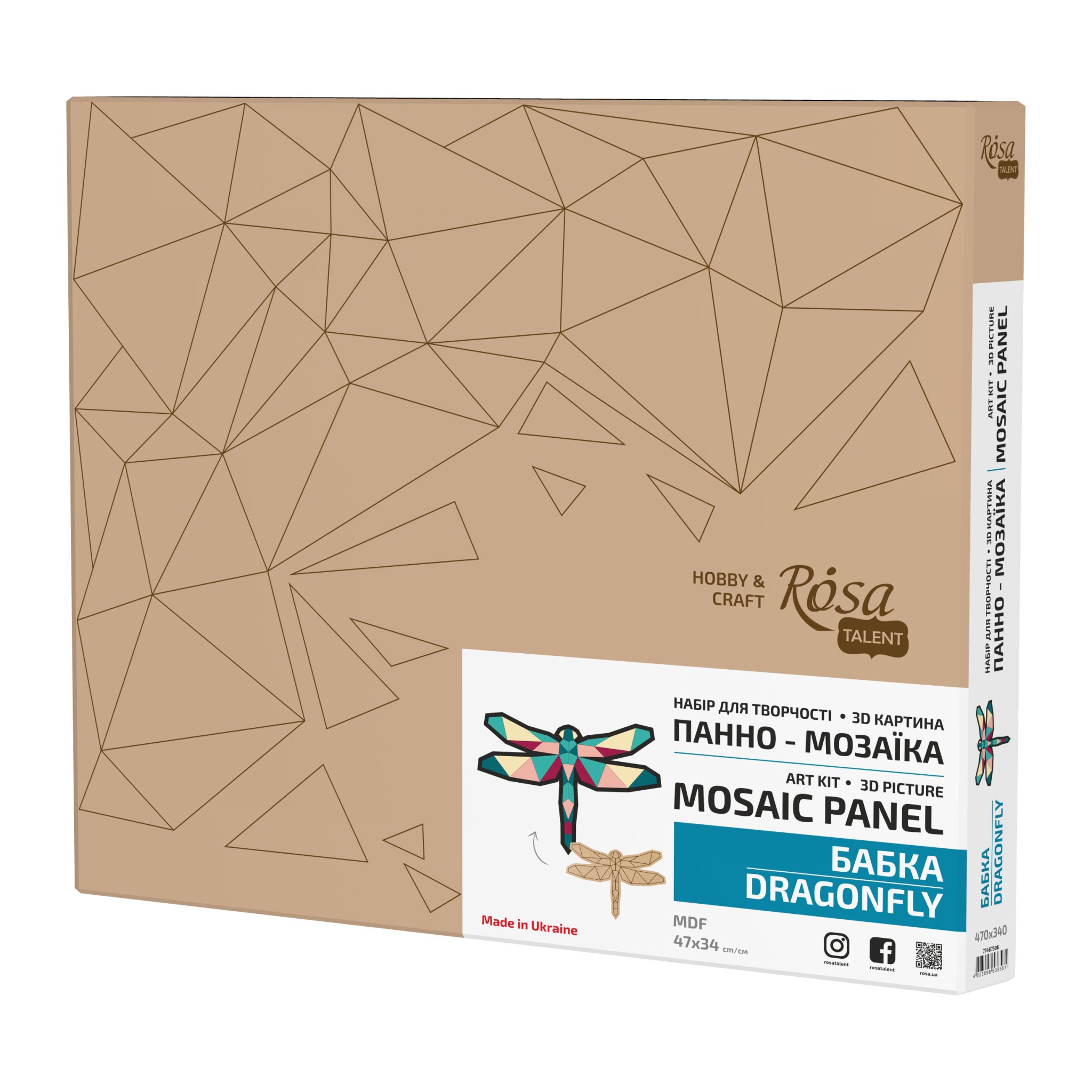 Art Kit 3D Picture Panel Mosaic “Dragonfly”, MDF, 47×34 cm, ROSA Talent