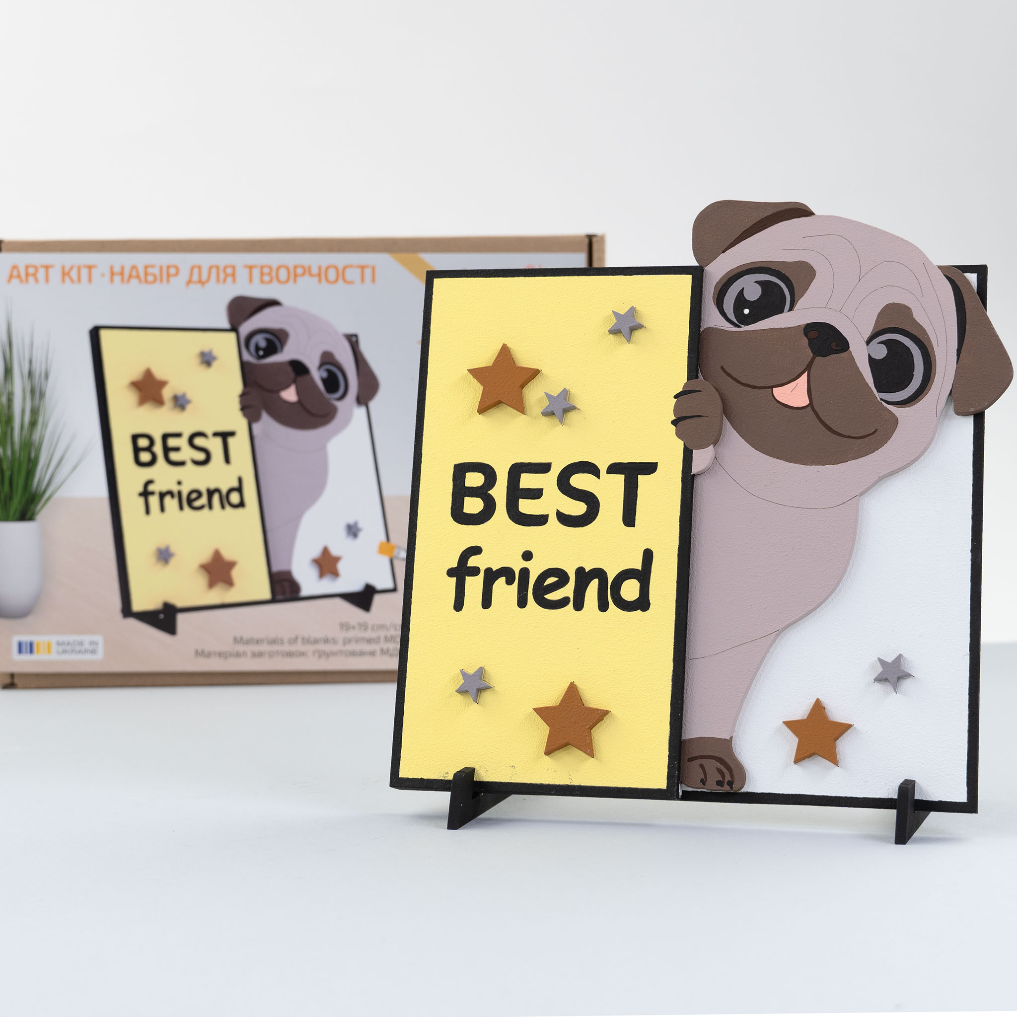 Set, 3D painting, „Best Friend“, primed MDF, 19x19cm, ROSA Talent