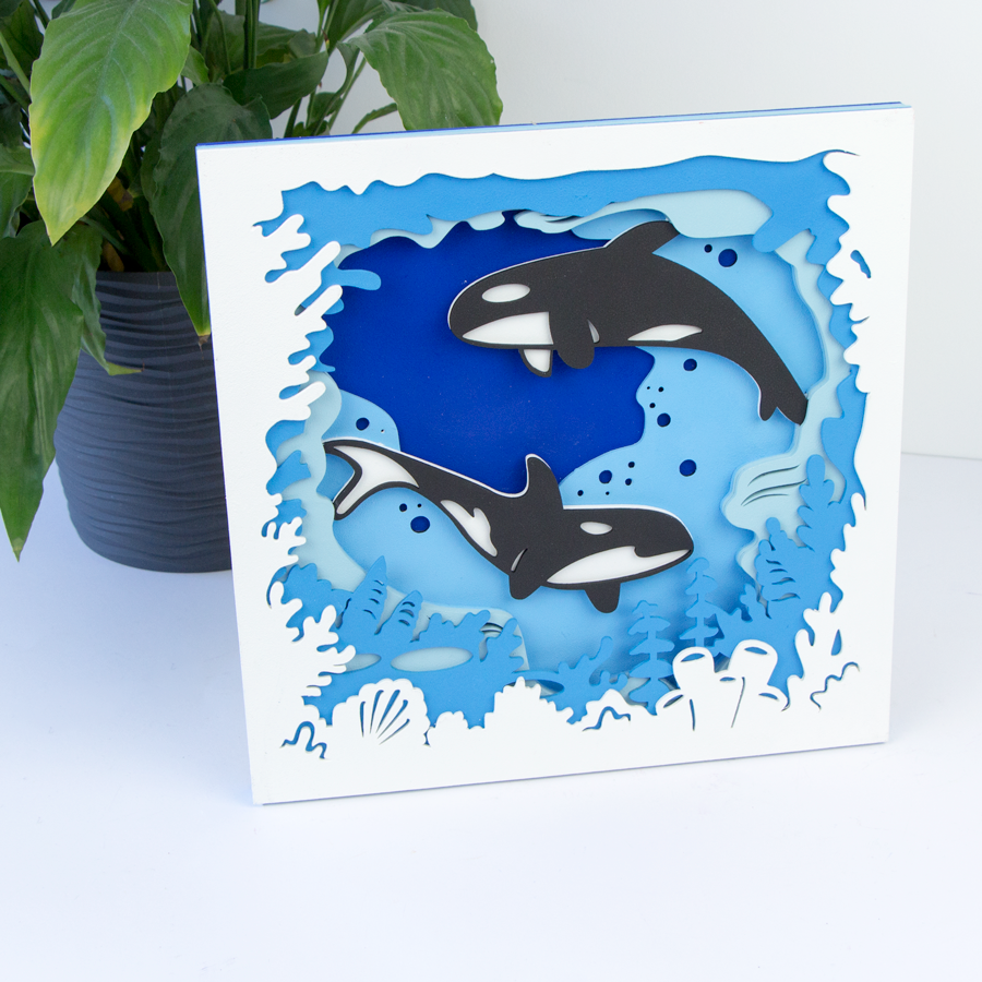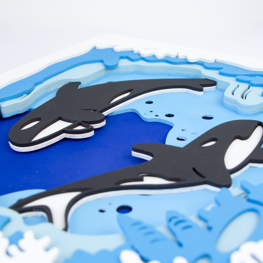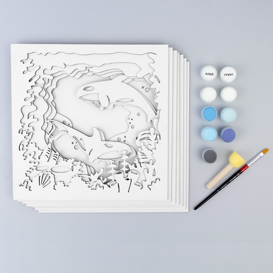 “Killer Whales” set, 3D painting, fiberboard, 30x30cm, ROSA Talent