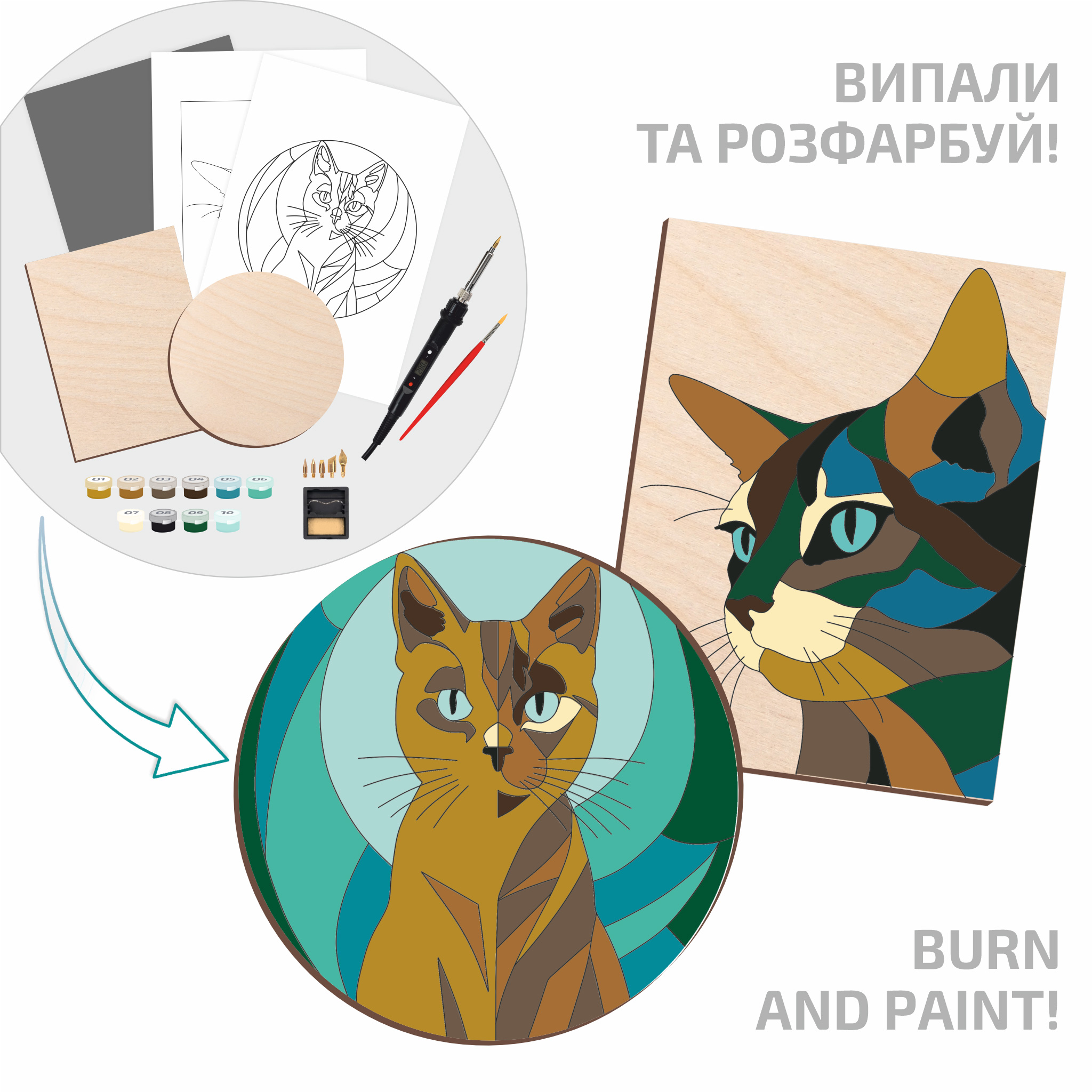 Set for woodburning and painting „Cats“ ROSA Start
