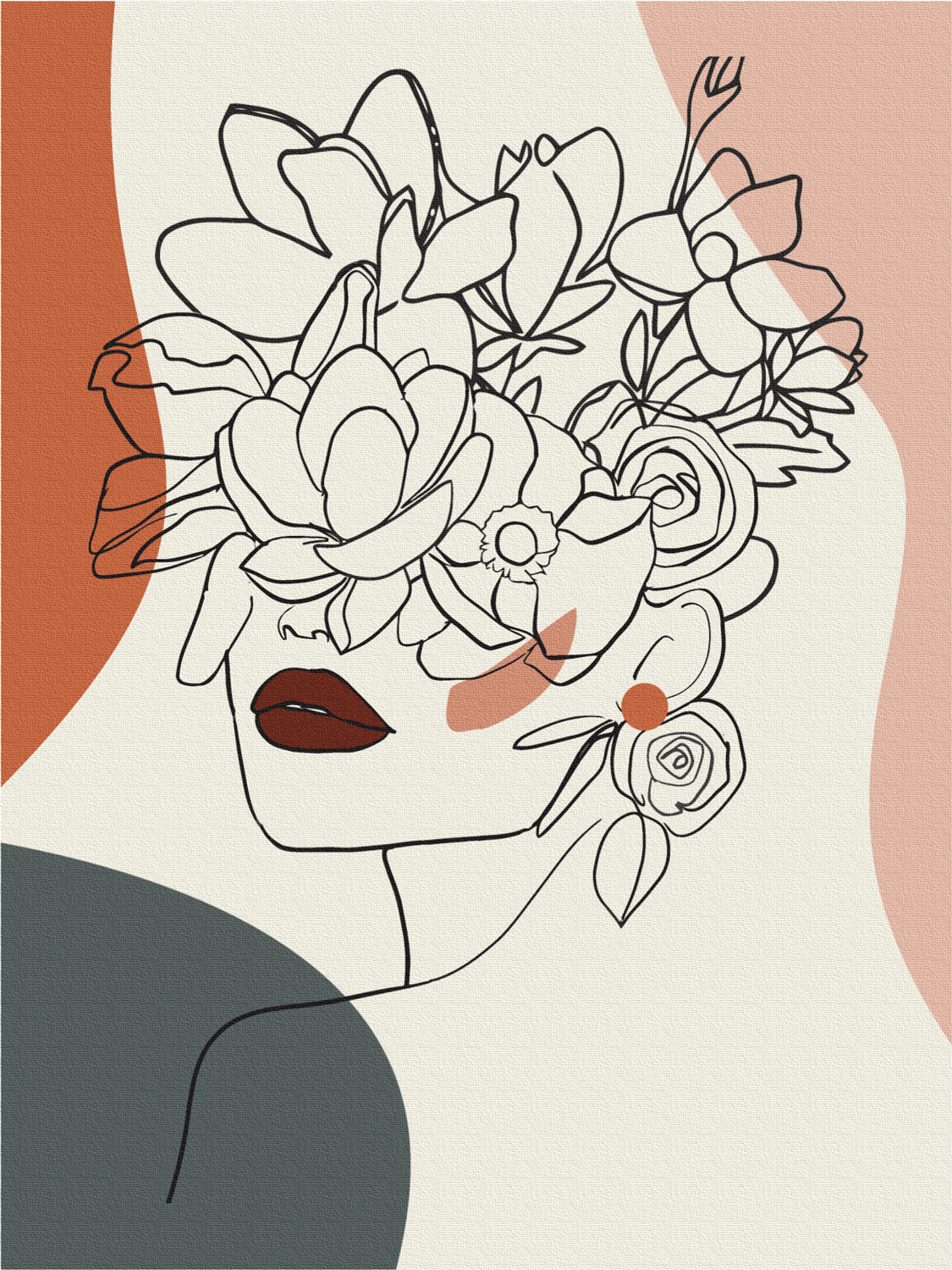 „Floral Girl 1“, Canvas Panel with outline, 30х40, cotton, acrylic, ROSA START