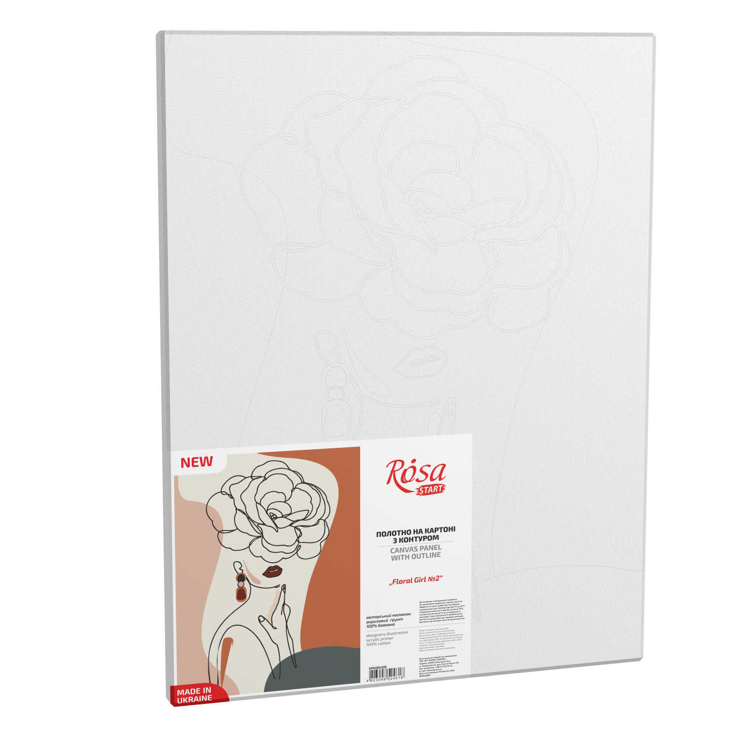 „Floral Girl 2“, Canvas Panel with outline, 30х40, cotton, acrylic, ROSA START