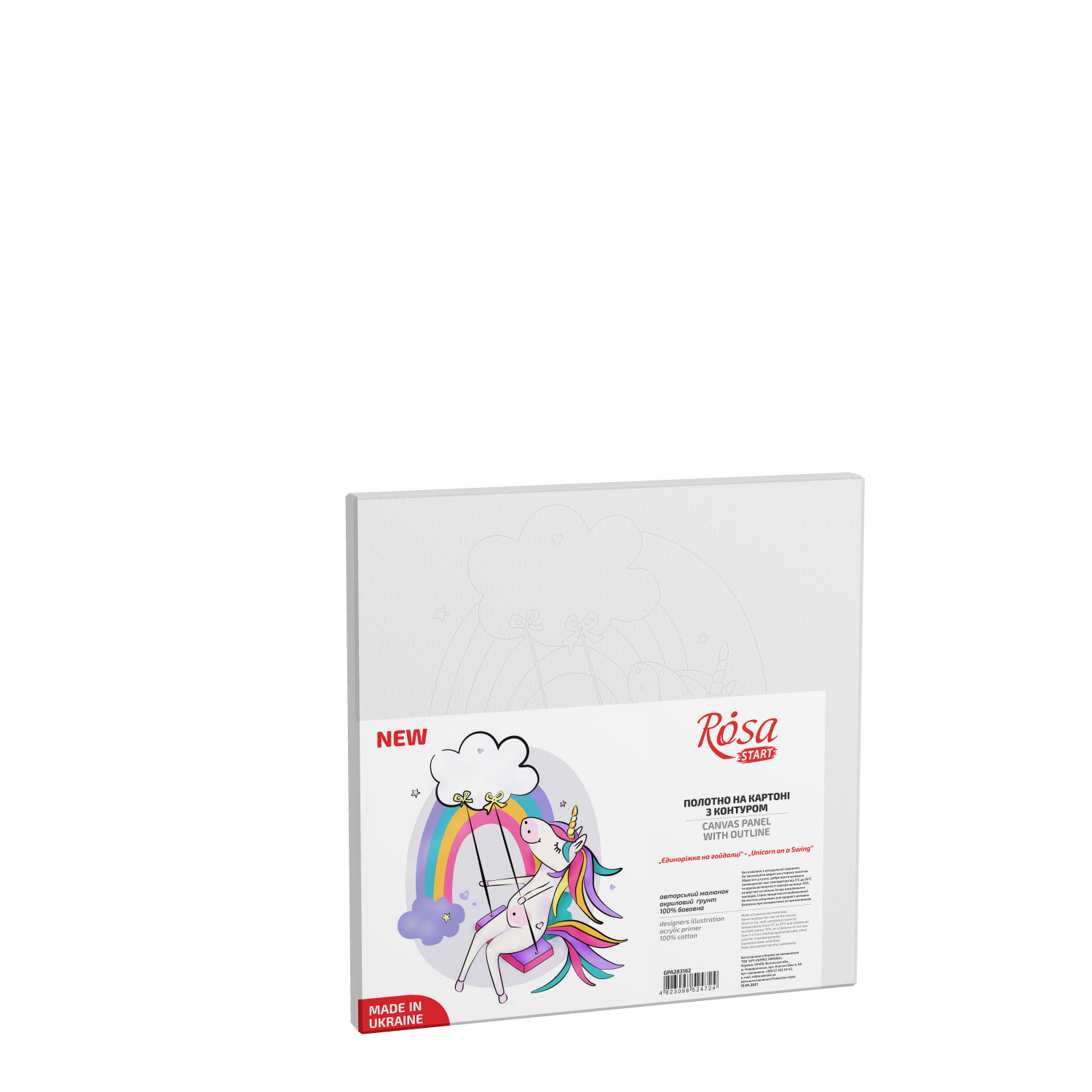„Unicorn on a Swing“, Canvas Panel with outline, 20х20cm, cotton, acrylic, ROSA START