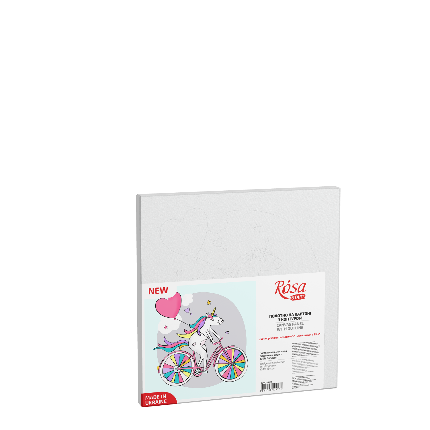 „Unicorn on a Вicycle“, Canvas Panel with outline, 20х20cm, cotton, acrylic, ROSA START