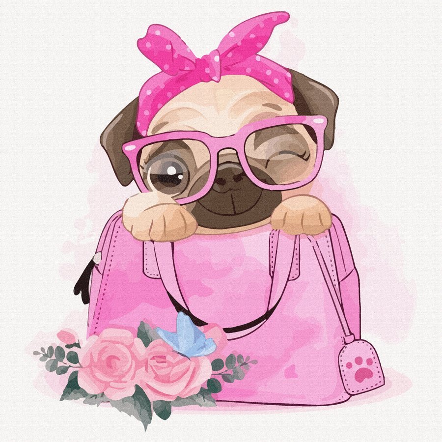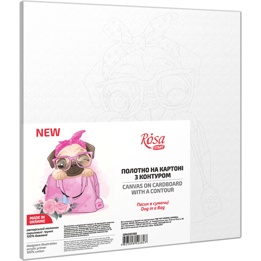 „Dog in a Вag“, Canvas Panel with outline, 20х20cm, cotton, acrylic, ROSA START