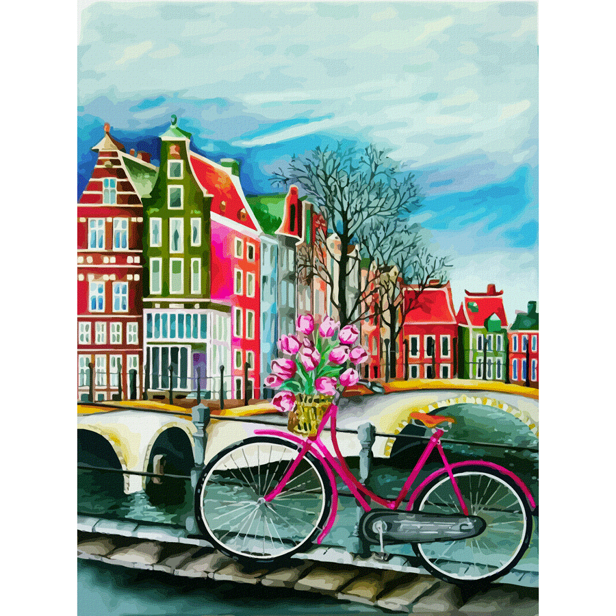 Cities, „Amsterdam 3“, Canvas Panel with outline, 30х40cm, cotton, acrylic, ROSA START