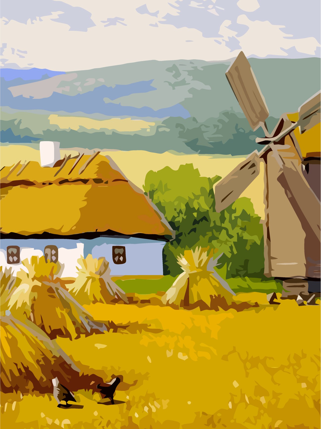 Landscape №32, Canvas Panel with outline, 30х40, cotton, acrylic, ROSA START