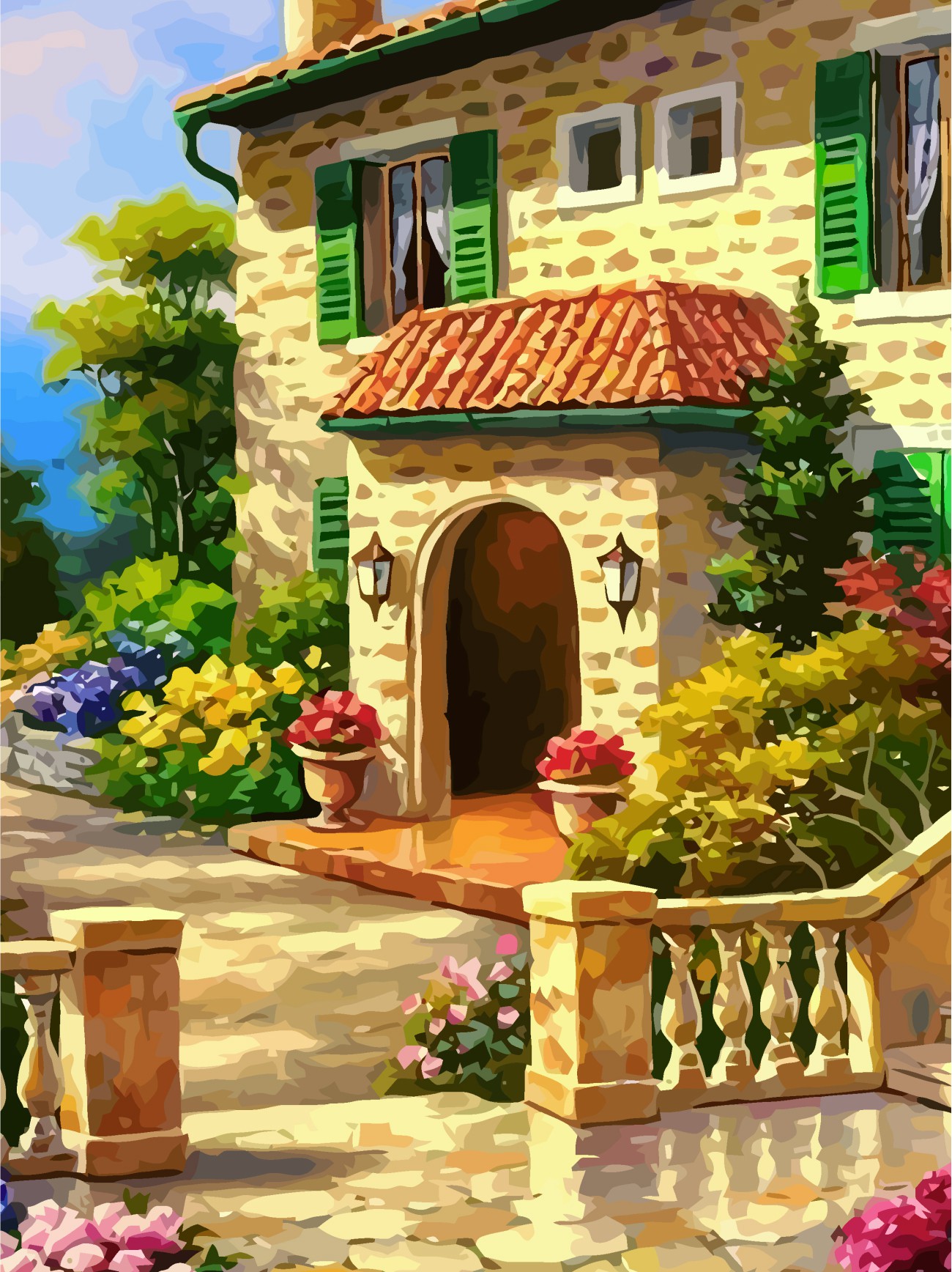 Landscape №33, Canvas Panel with outline, 30х40, cotton, acrylic, ROSA START
