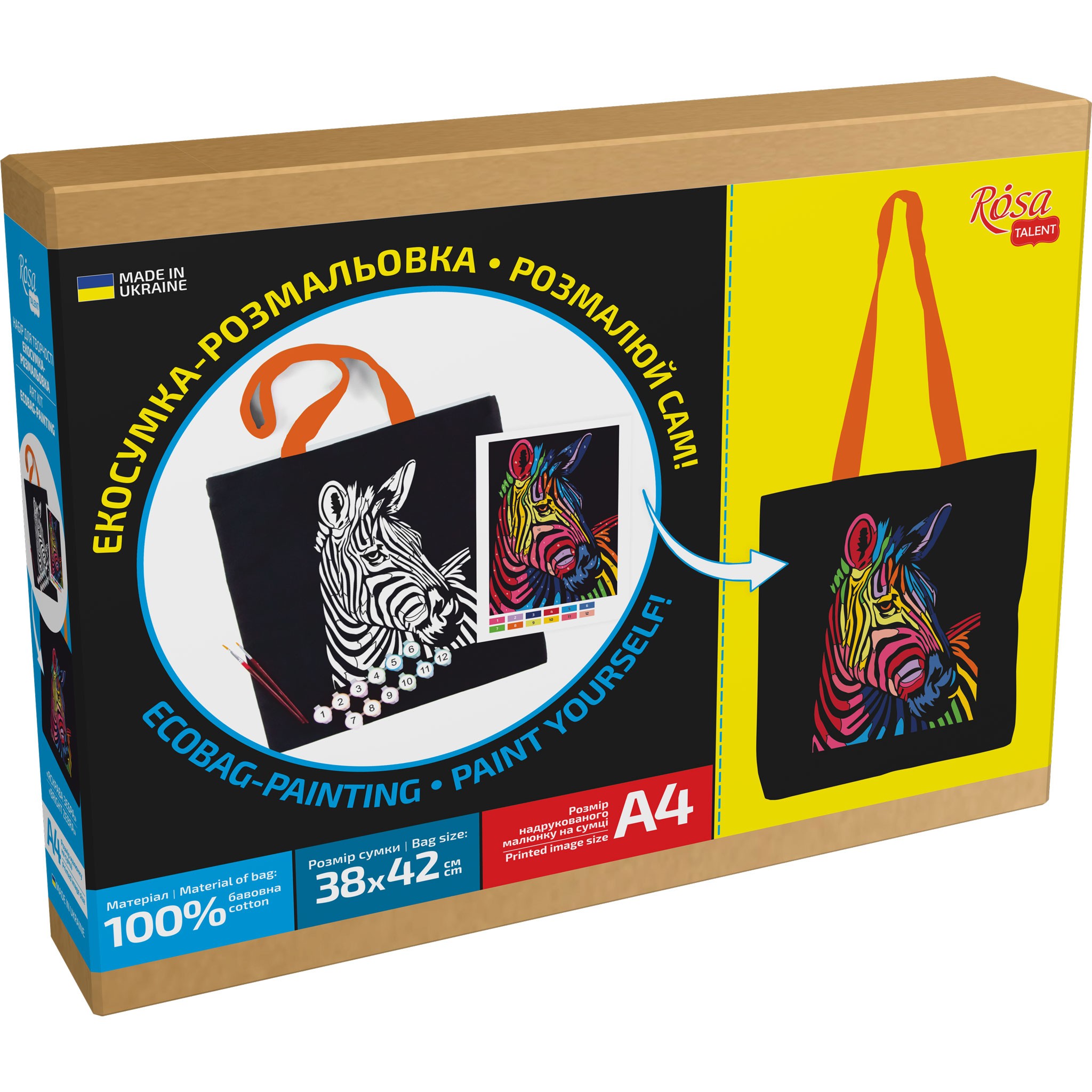 Set, ecobag-coloring, black, „Bright Zebra“, cotton 240 gsm, 38×42 cm, ROSA Talent