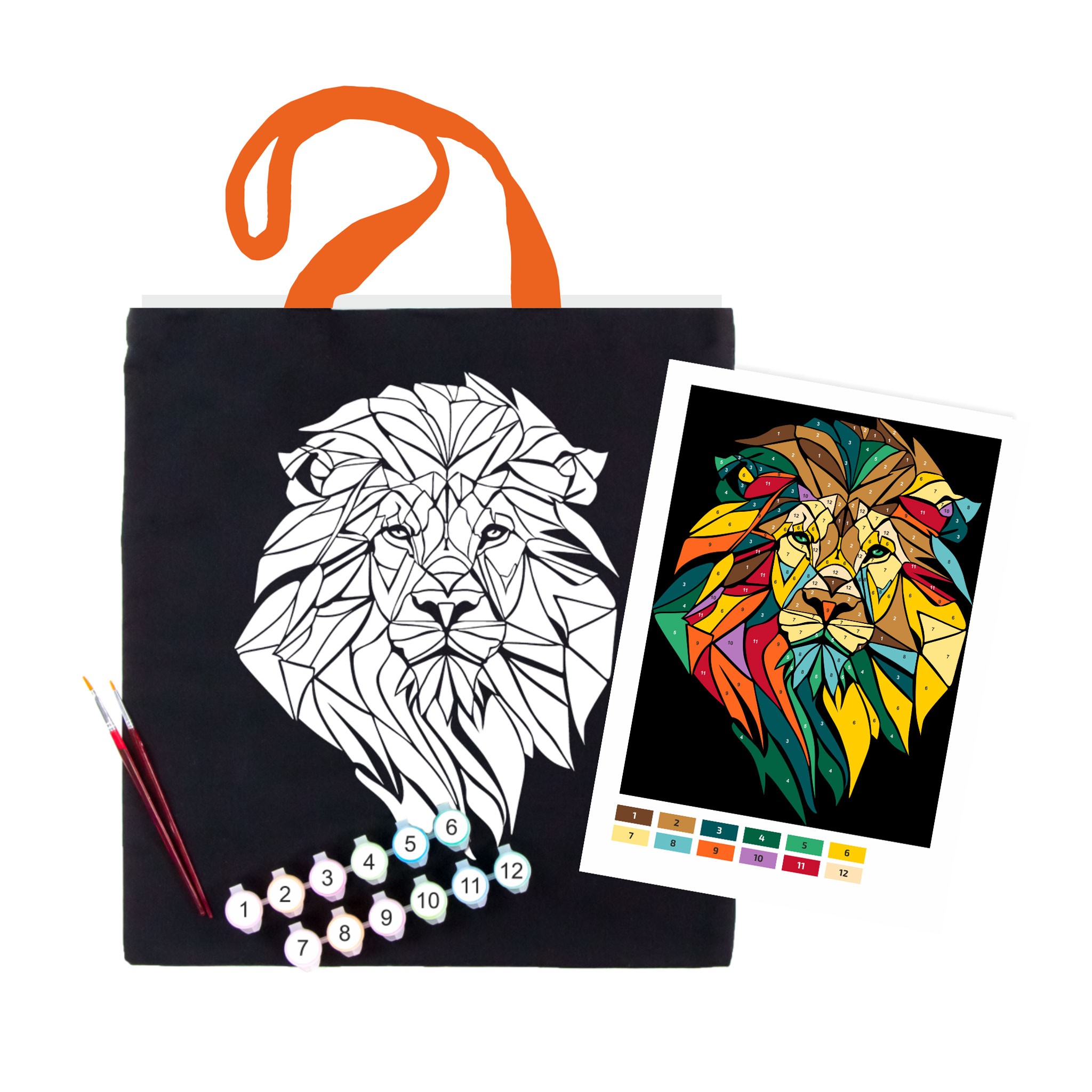 Set, ecobag-coloring, black, „Neon Lion“, cotton 240 gsm, 38×42 cm, ROSA Talent