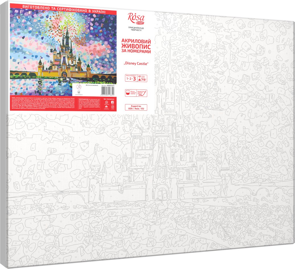 That’s why the first thing to look out for when choosing a painting by numbers is the level of difficulty. Pictures by numbers ROSA START have three levels of difficulty, which can be determined by the corresponding mark on the label and the color of the label itself: