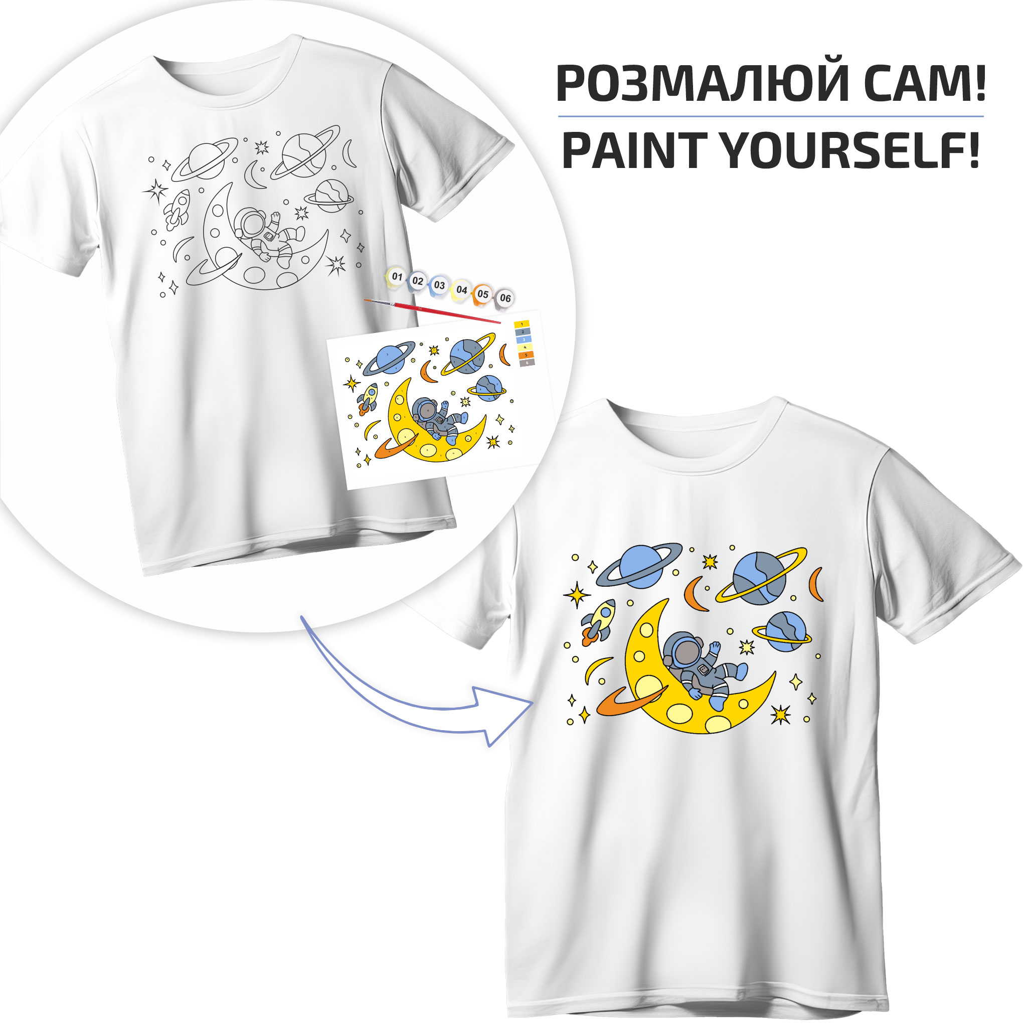 Set, T-Shirt painting „Space Adventures“, 100% Cotton, Size S, ROSA Talent