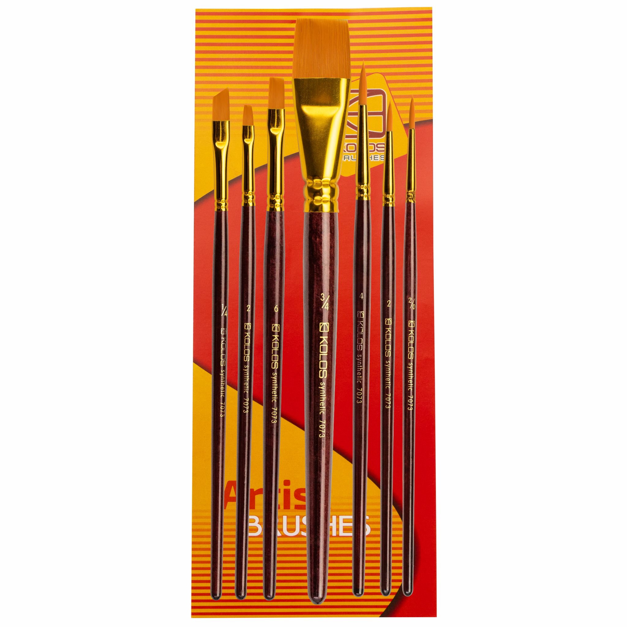 Synthetic Brush Set 7073: Round, Flat, Angular, 7 pcs, KOLOS by ROSA