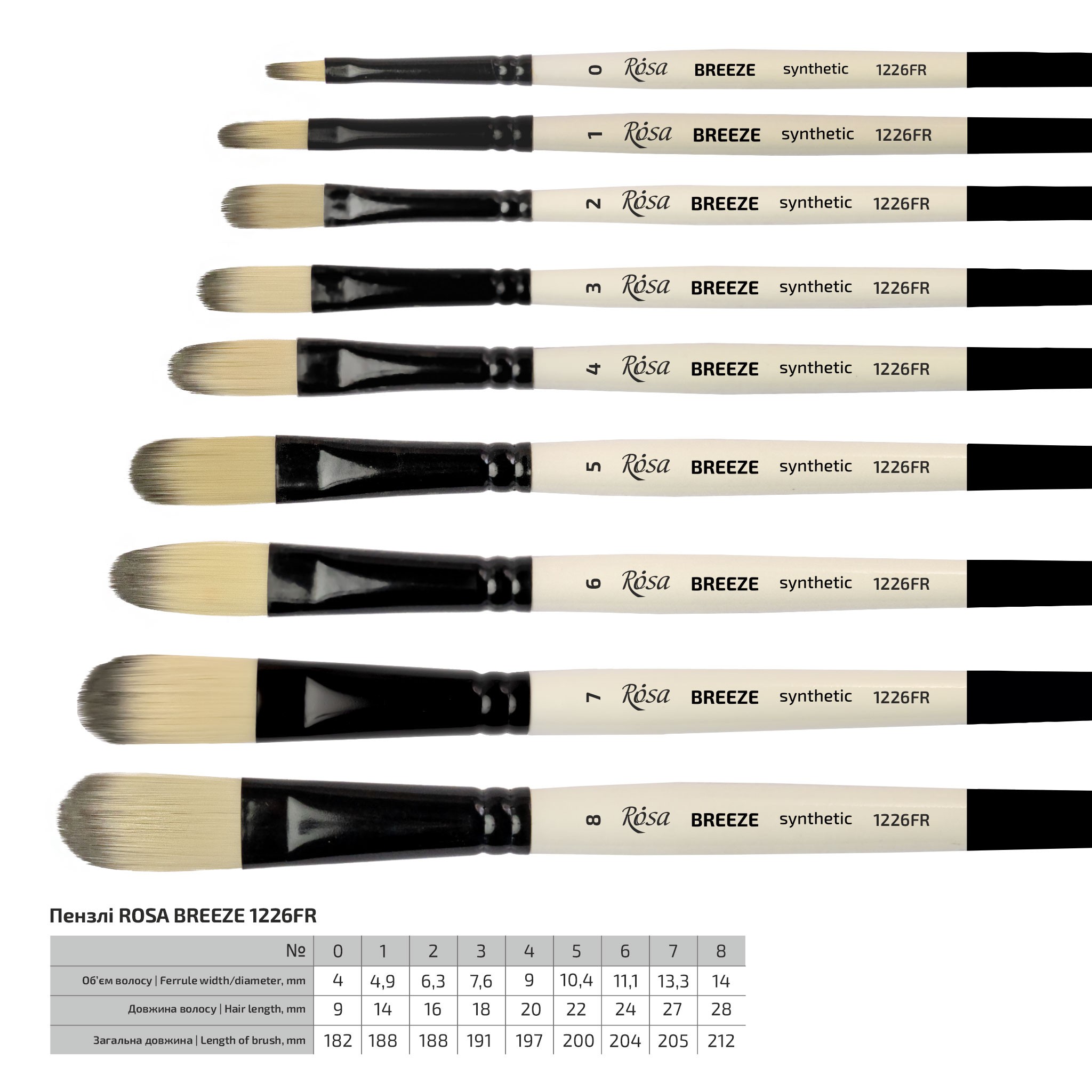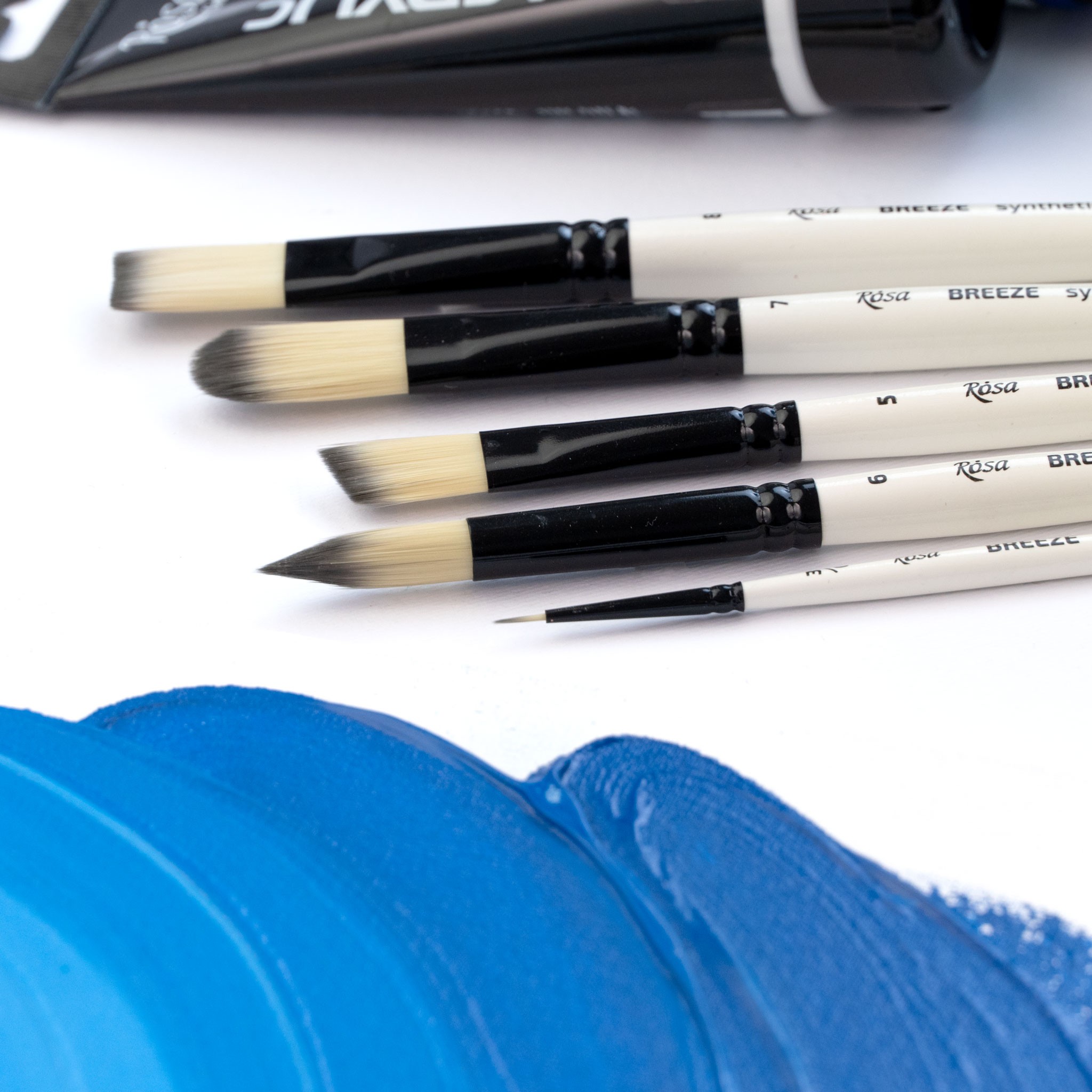 BREEZE series – brushes made of thin, soft synthetic hair are ideal for working with acrylic paint, and can also be used for watercolors. Soft, yet elastic light beige hair with a dark gray tip holds its shape well before and after wetting, and it is easy to control while working. It allows you to paint details and very thin lines.