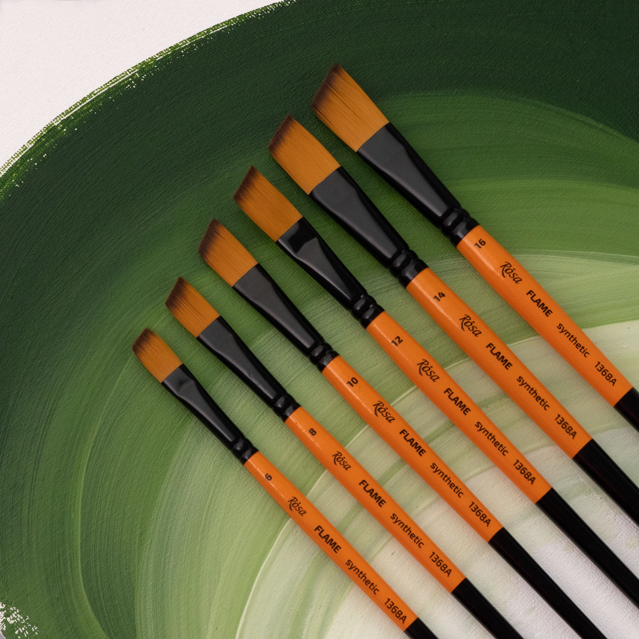 FLAME series. Brushes made of elastic synthetic hair of medium stiffness are ideal for working with acrylic and gouache paints.
