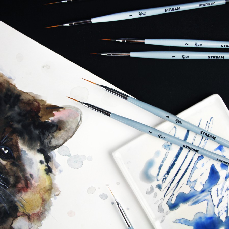 ROSA STREAM round liners have soft elastic synthetic fiber of red colour and are presented in three series. Brushes ideally keep the pointed tip after wetting and they are indispensable for painting details, fine lines, accents, and signatures. Grass, stems, thin branches, hair, wool painted with STREAM liners provide the work with a complete, realistic look.