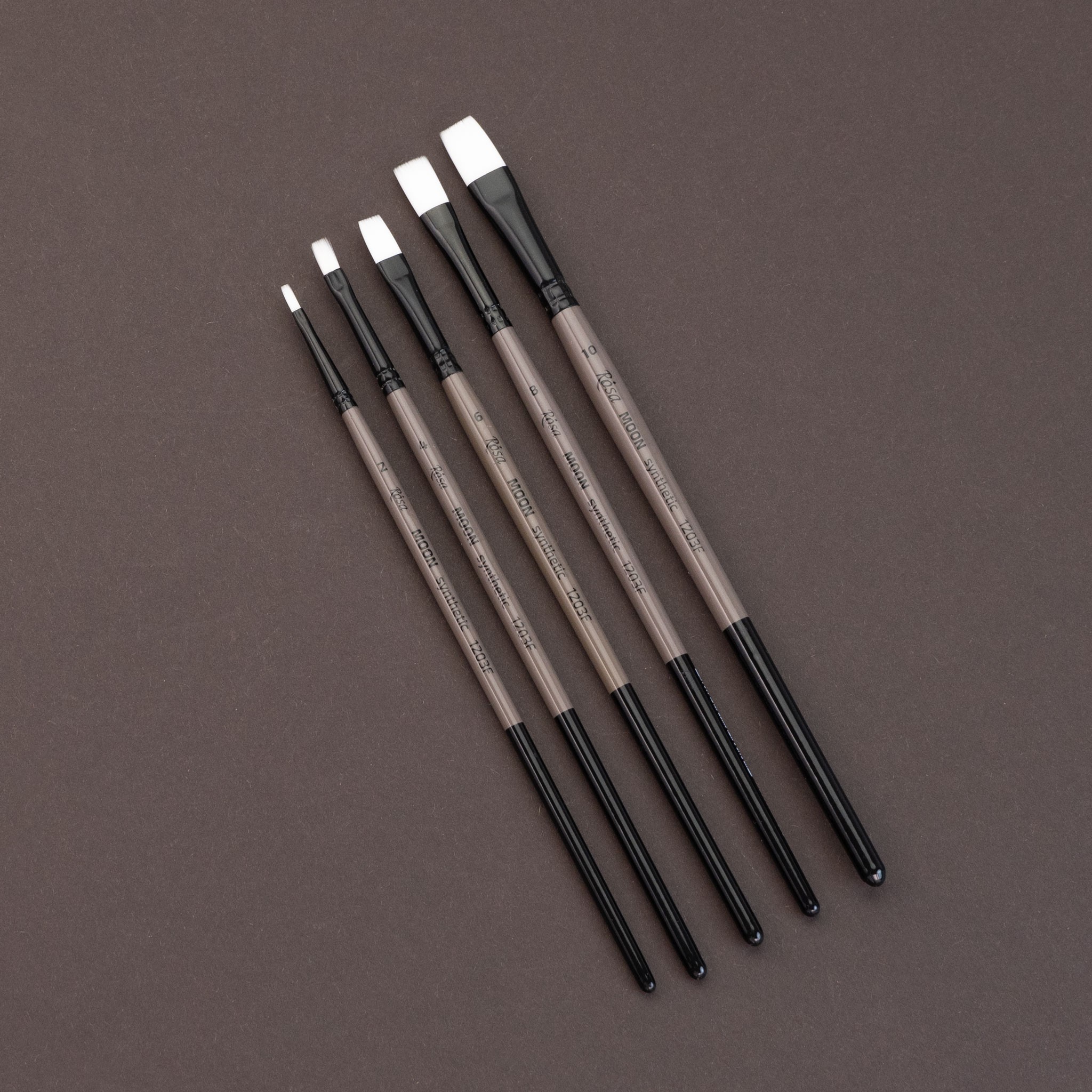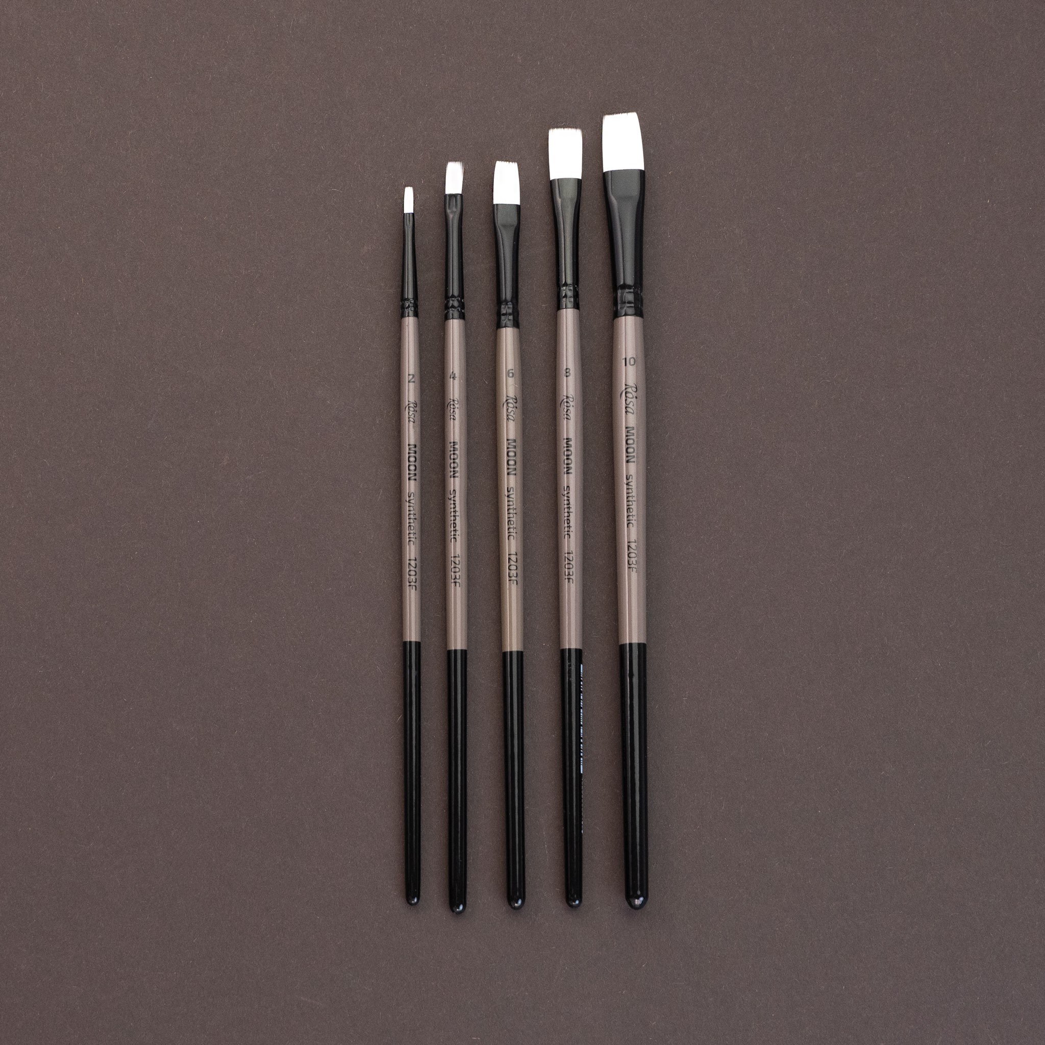 Synthetic Flat Brush, MOON 1203F, Short Handle, ROSA
