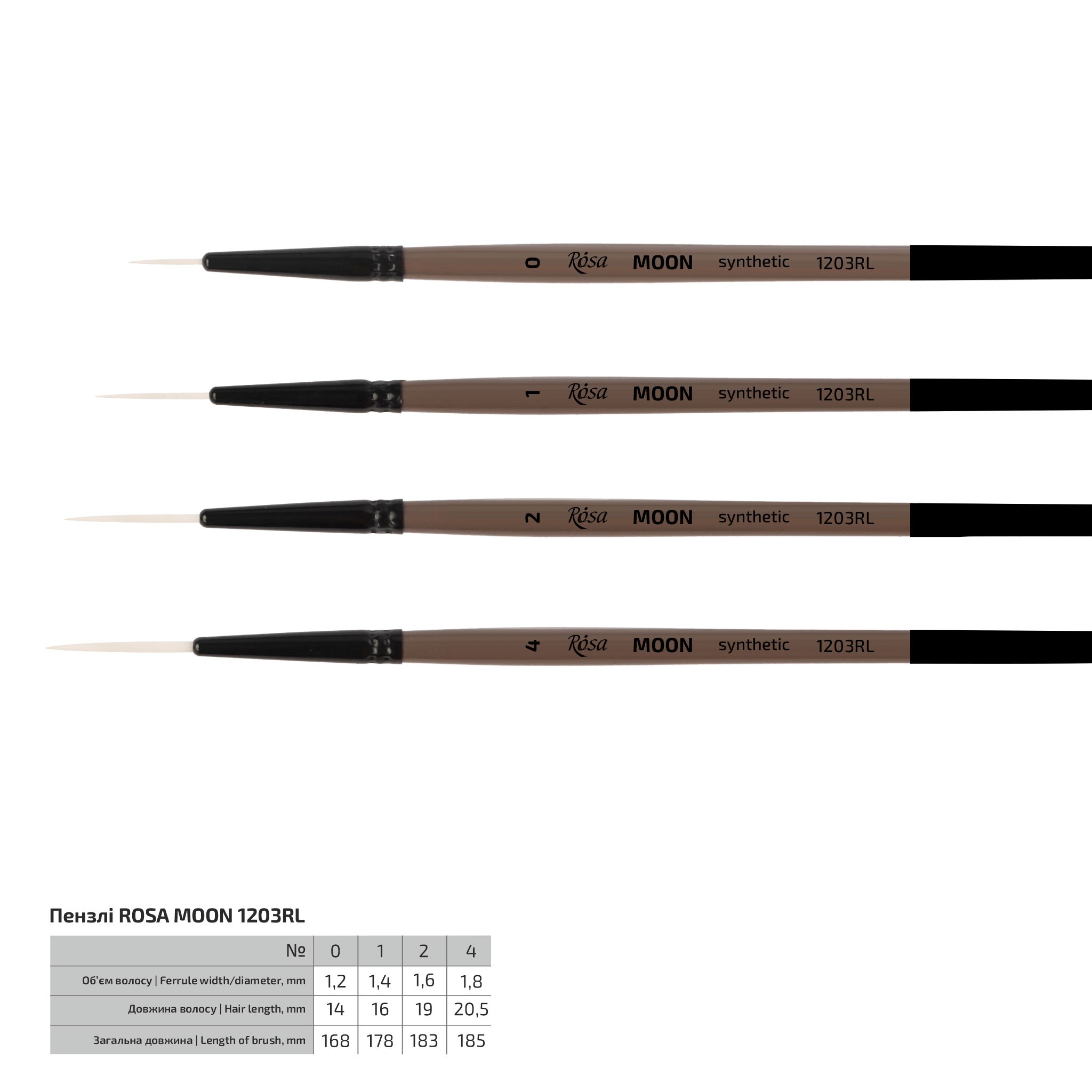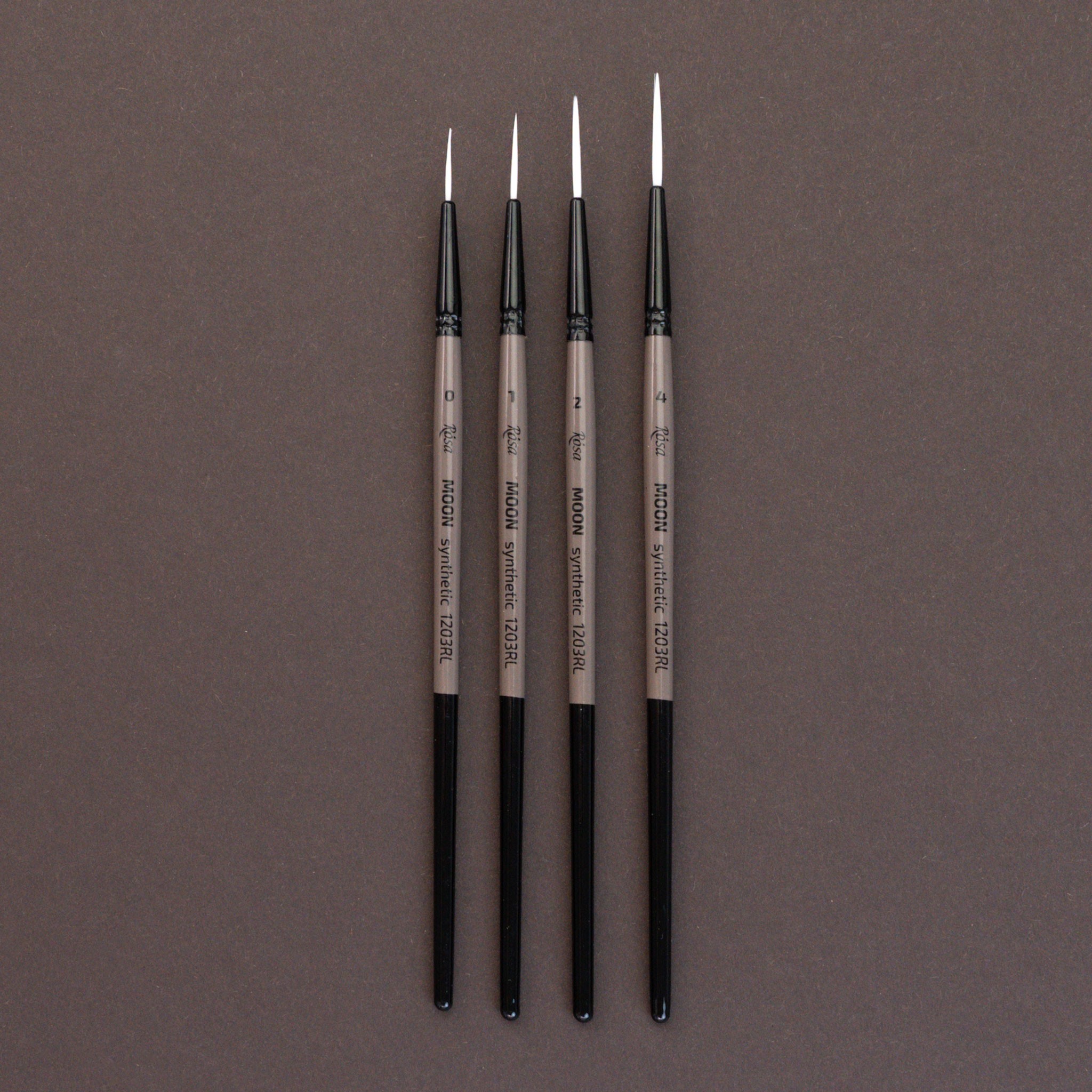 MOON series – brushes made of elastic soft synthetic white hair on a short handle. Soft, yet elastic and controlled hair bristle holds its original shape well when dry and retains it when wet. Round and angle shapes have a sharp tip, which is convenient for creating thin lines, and painting small details, and also makes it possible to work with small pieces.