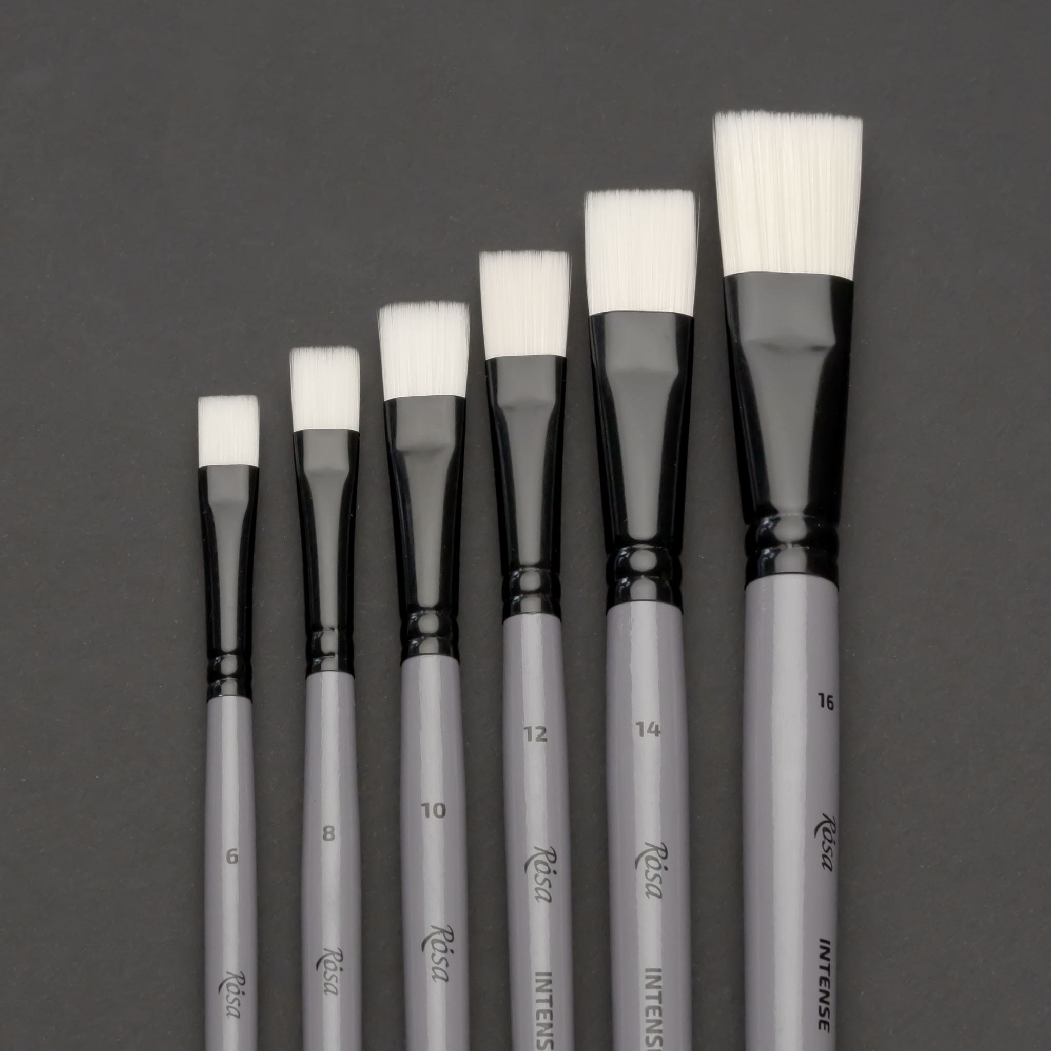 The INTENSE series – brushes with stiff white synthetic hair are a good alternative to bristles for thick paint and for creating textured strokes with character. Elastic hair soaks up and holds oil paint and acrylics well.