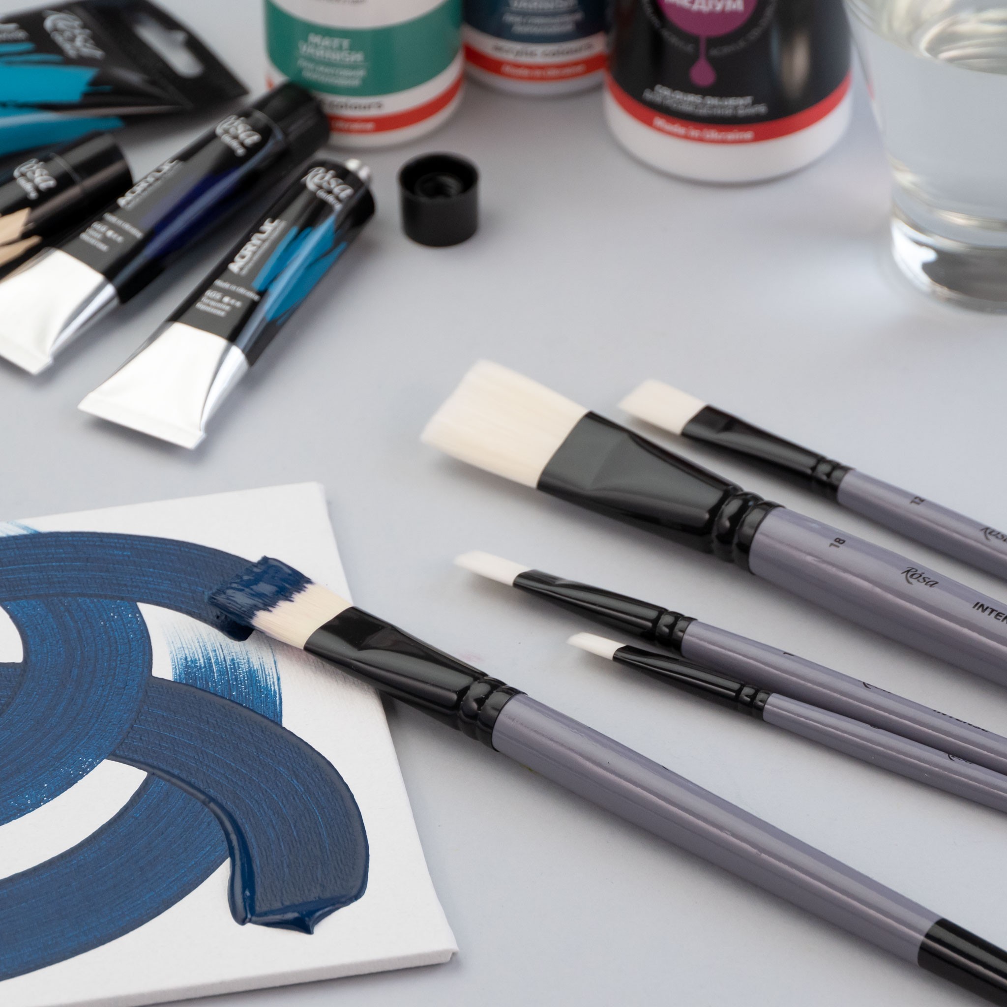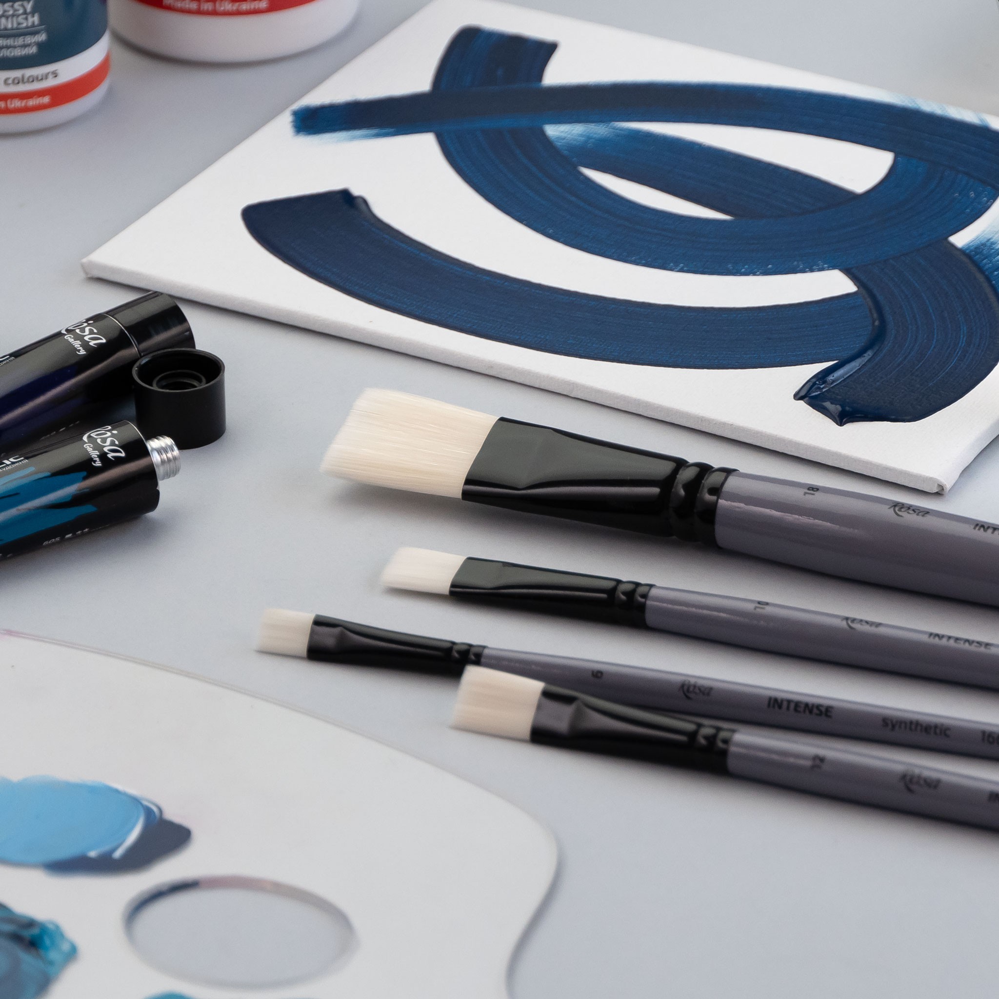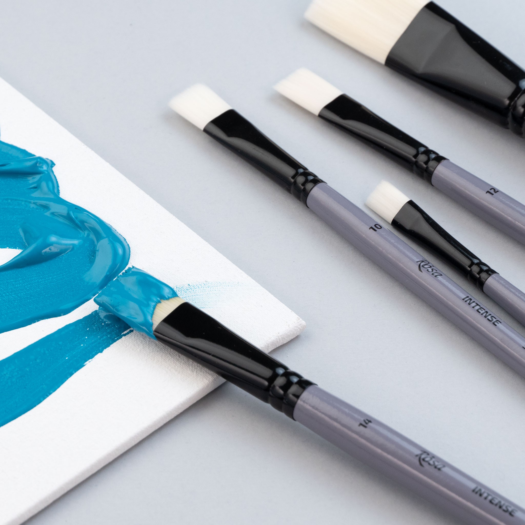 Brushes of the INTENSE series are a good choice for evenly covering surfaces and creating texture. Elastic stiff hair will last longer than natural hair and will cope well with the brushstrokes typical of oil painting.
