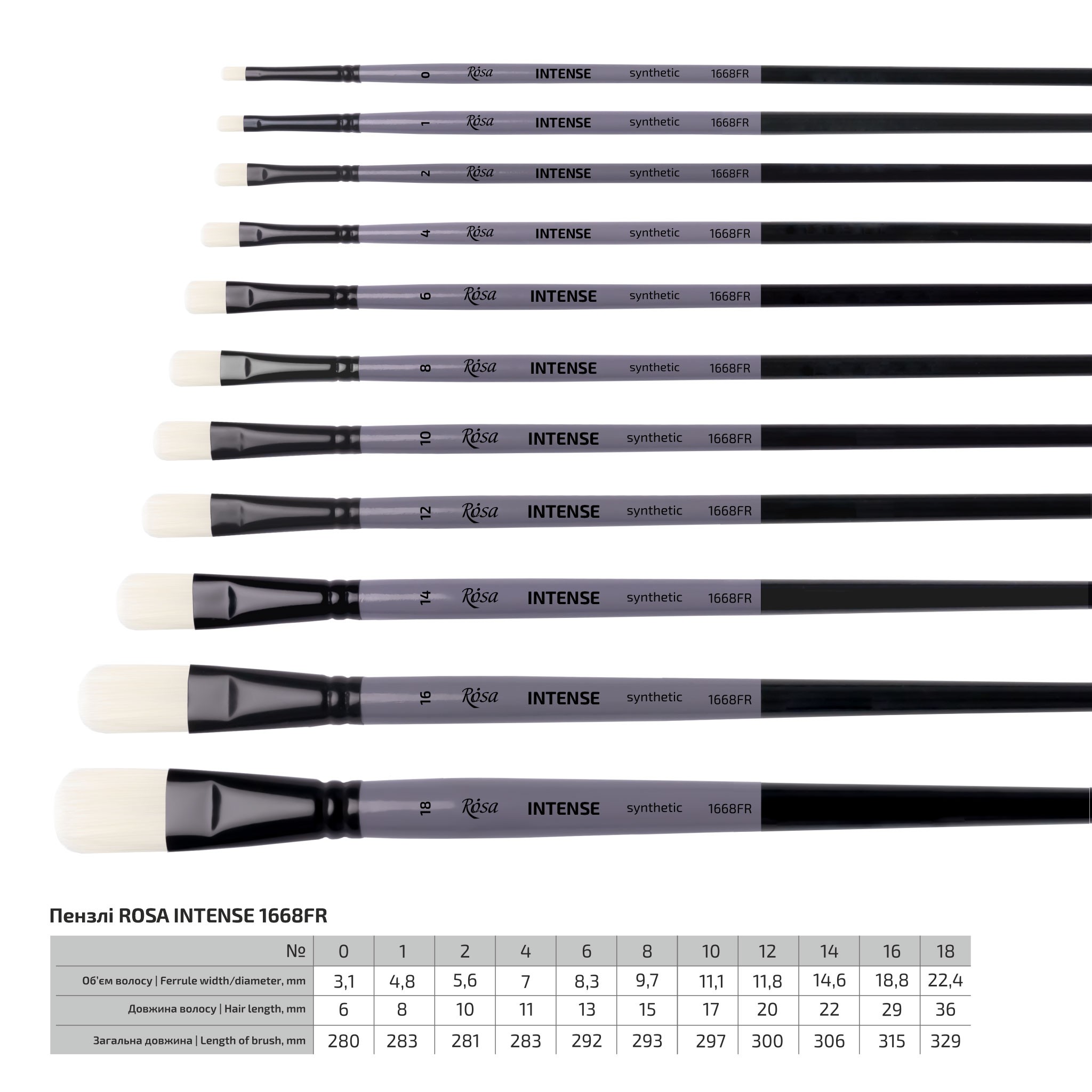 The INTENSE series – brushes with stiff white synthetic hair are a good alternative to bristles for thick paint and for creating textured strokes with character. Elastic hair soaks up and holds oil paint and acrylics well.