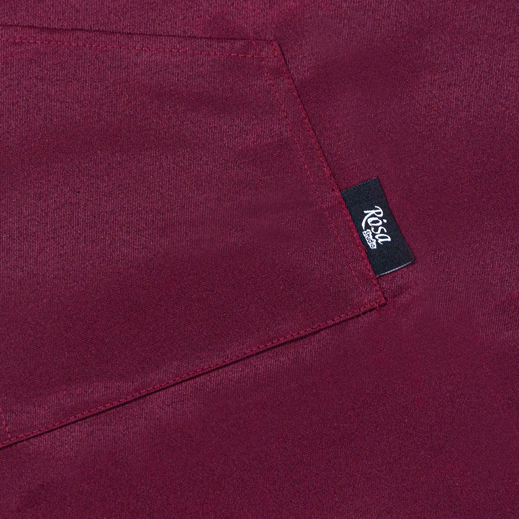 Aprons from ROSA are available in three colors: burgundy, stone grey, black in size 90x96cm; burgundy, stone grey in size 70x76cm.