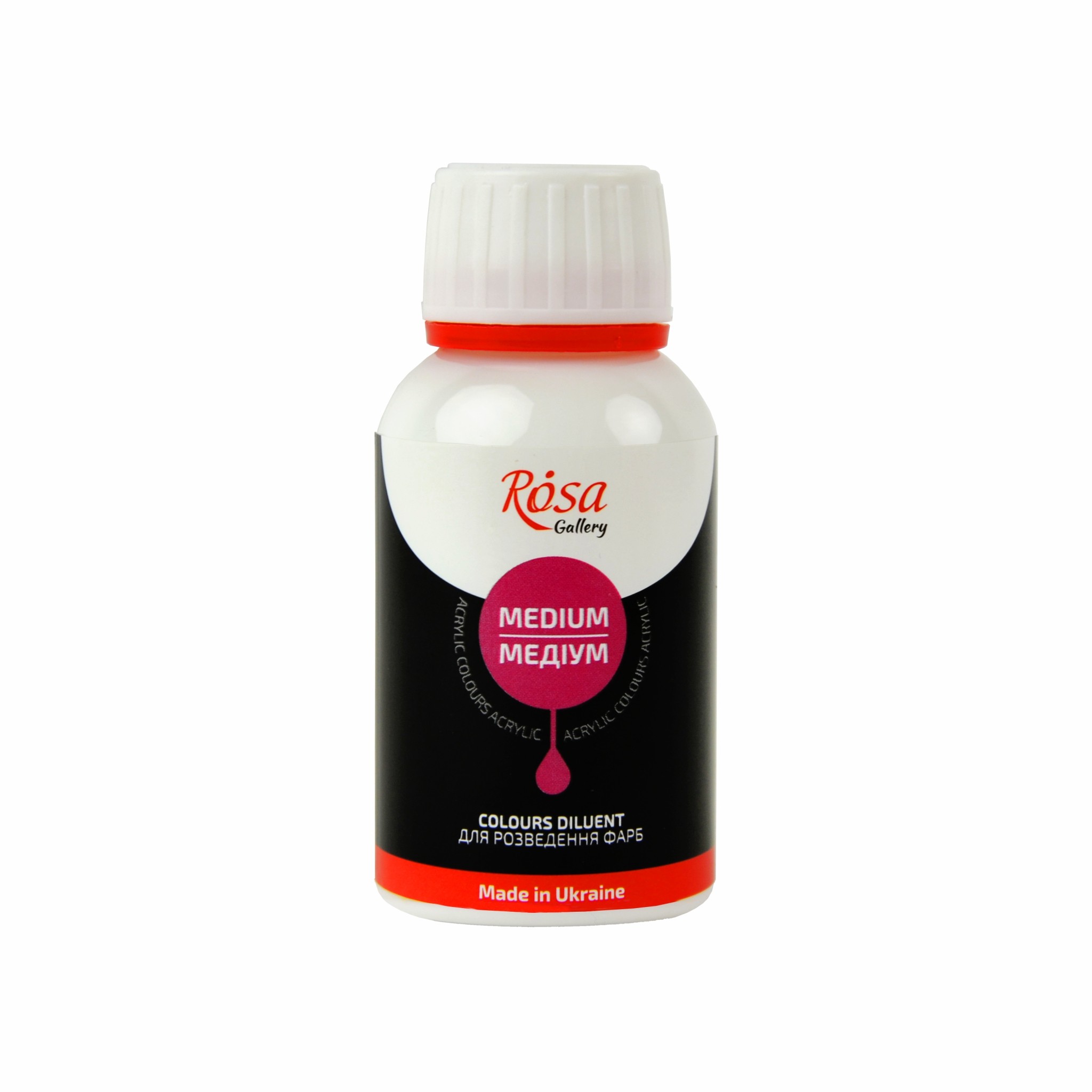 Medium for delution acrylic paints ROSA Gallery can be used to dilute acrylic paints as well as improve adhesion between the surface and the paint layer. Made on the basis of the high quality acrylic dispersion, ROSA Gallery Medium doesn’t yellow or change the colour over time. Once dry it becomes transparent and gives paints a light sheen. ROSA Gallery Medium increases the elasticity and resistance of the paint layer and has no influence on the drying time. Stir before the use. Mix with water. Rinse brushes and instruments after work. The ROSA Gallery Medium is intended for dilution acrylic paints, as well as increasing the adhesion level between the base for painting and a color layer.